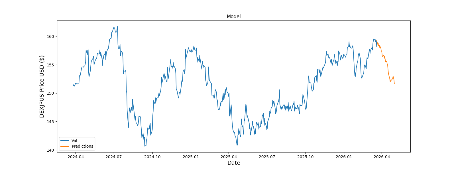このページでは為替のうちドル円のチャートを対象に、AIにより現在から2週間後までのチャート予測を行い、予測した結果を情報として提供しています。